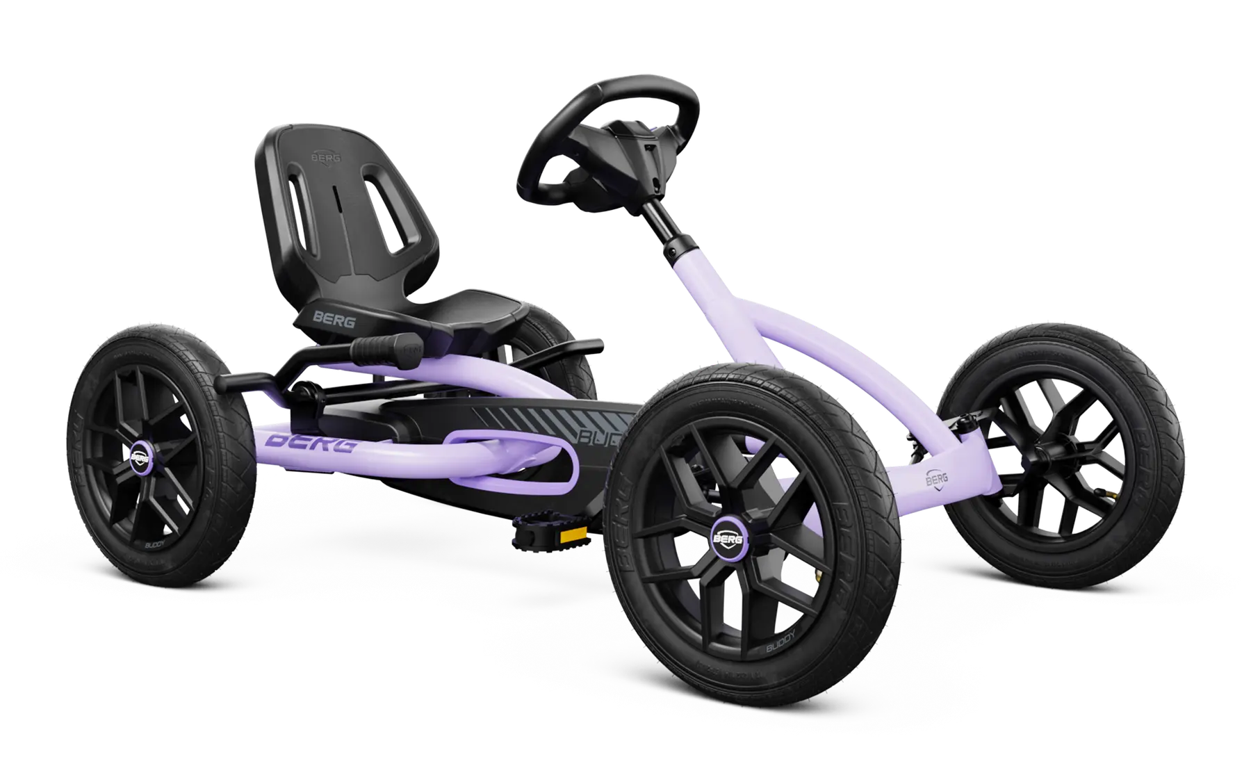 S motokárou BERG Buddy ukradnete show v sousedství. Sedíte pohodlně v prostorném sedačce typu bucket, zatímco volant vám poskytuje dokonalý úchop. Volant je navíc připraven pro BERG Soundbox. Ať už si vyberete jakoukoli verzi, s Buddy jste bezpochyby nejúžasnější závodník na ulici!