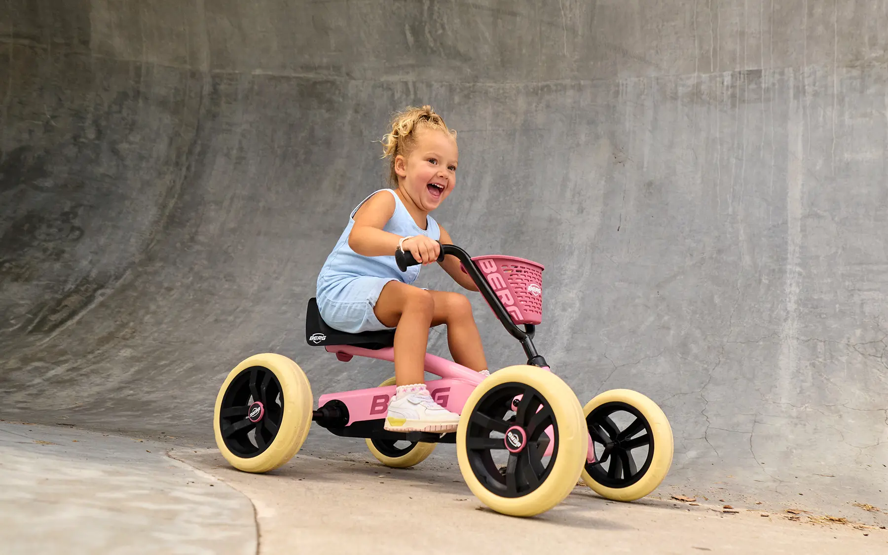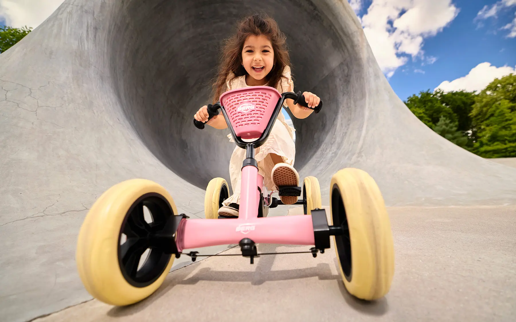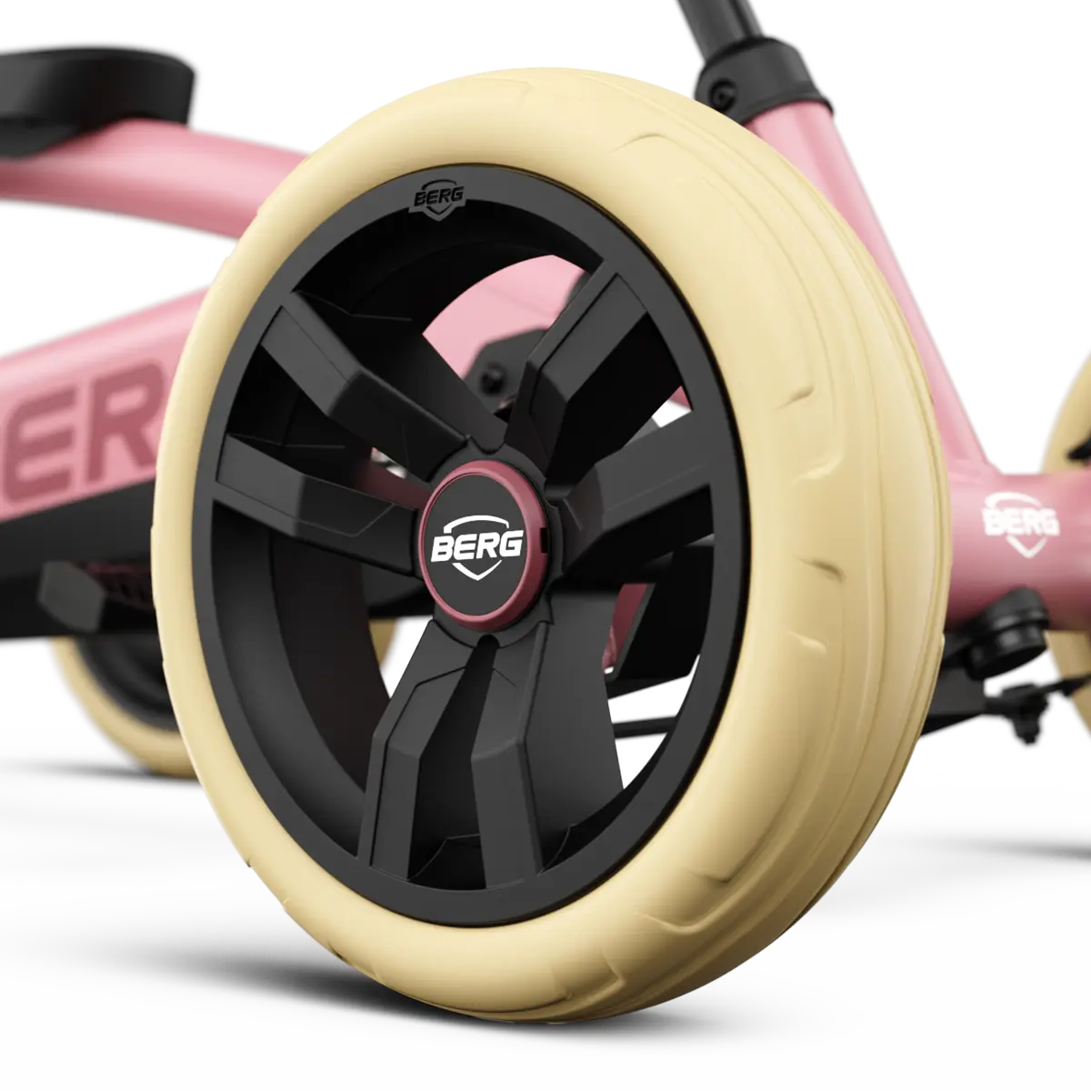 Čtyři terénní kola a kyvná náprava udržují BERG Buzzy pevně na zemi. Na Buzzy vaše dítě zvládne jakýkoli terén.