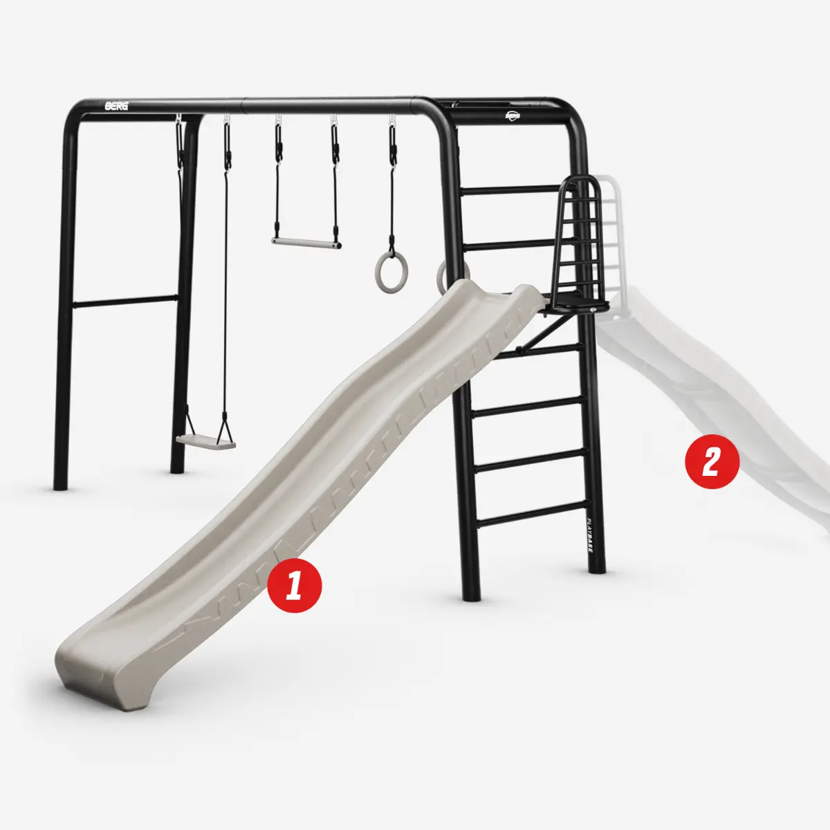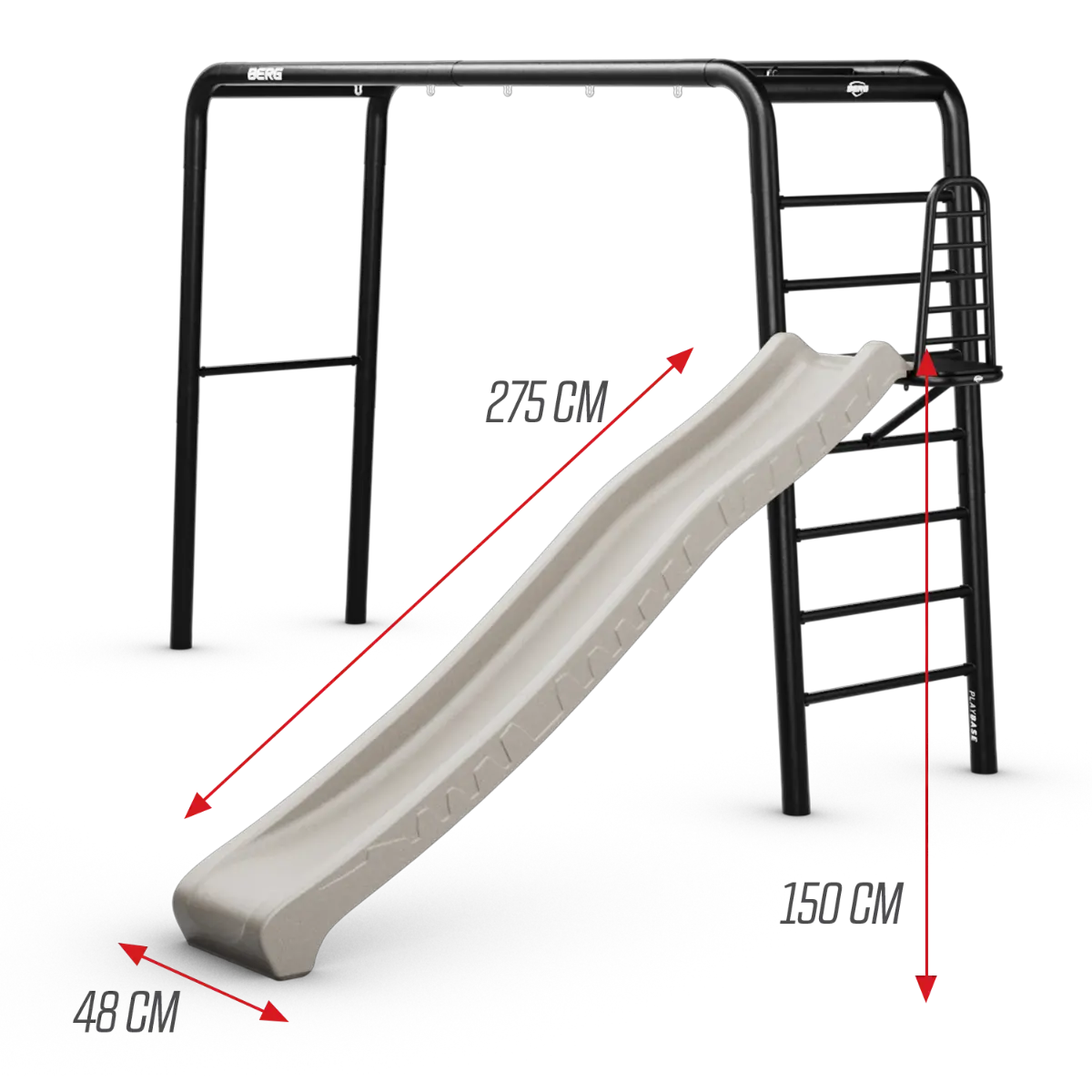 Robustní a odolný rám BERG PlayBase je navržen pro dlouhou životnost. S průměrem trubek 89 mm a pevnými patentovanými spojovacími prvky je rám mimořádně pevný. Několik vrstev povrchové úpravy zajišťuje odolnost vůči povětrnostním vlivům.