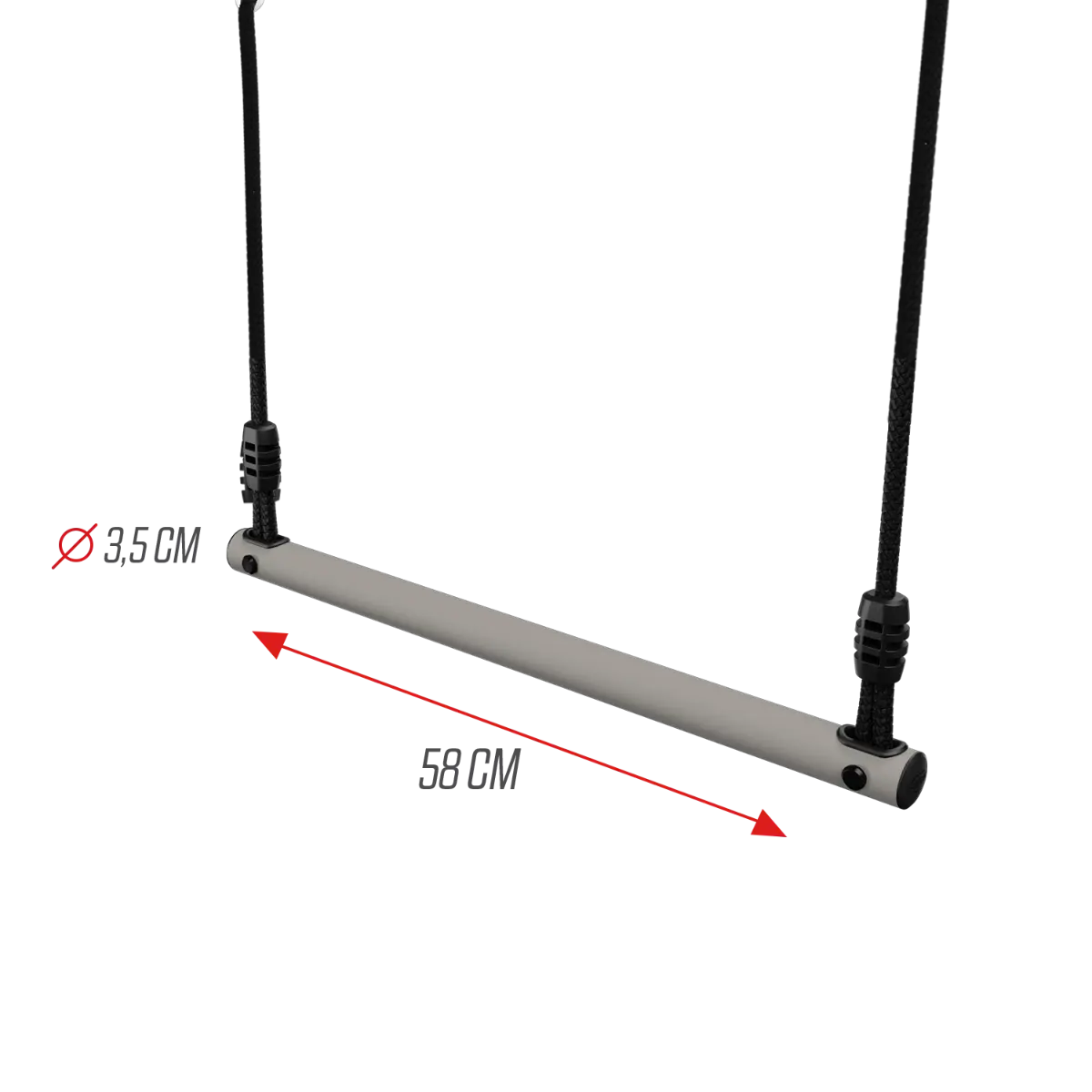 Chcete cvičit salta nebo si jen užívat houpačku na čerstvém vzduchu? S příslušenstvím BERG Hrazda získáte ještě více zábavy ze svého PlayBase. Ať už chceš zlepšit své gymnastické dovednosti, nebo si jen užít zábavné houpání – s tímto trapezem tě hra jen tak neomrzí. Díky moderní šedé barvě se trapez skvěle hodí do každé zahrady. K rámu PlayBase ho snadno připevníš pomocí karabin. Máte již jiné zařízení na hraní? I tak si můžete vybrat houpačky od BERG!