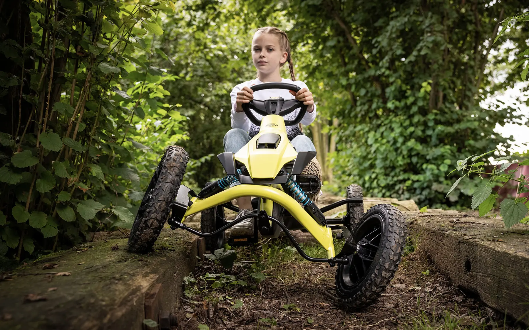 Ať už chtějí vaši průzkumníci poznávat okolí nebo uspořádat závody, šlapací motokára BERG nové řady Rally 2.0. je ideální volbou.