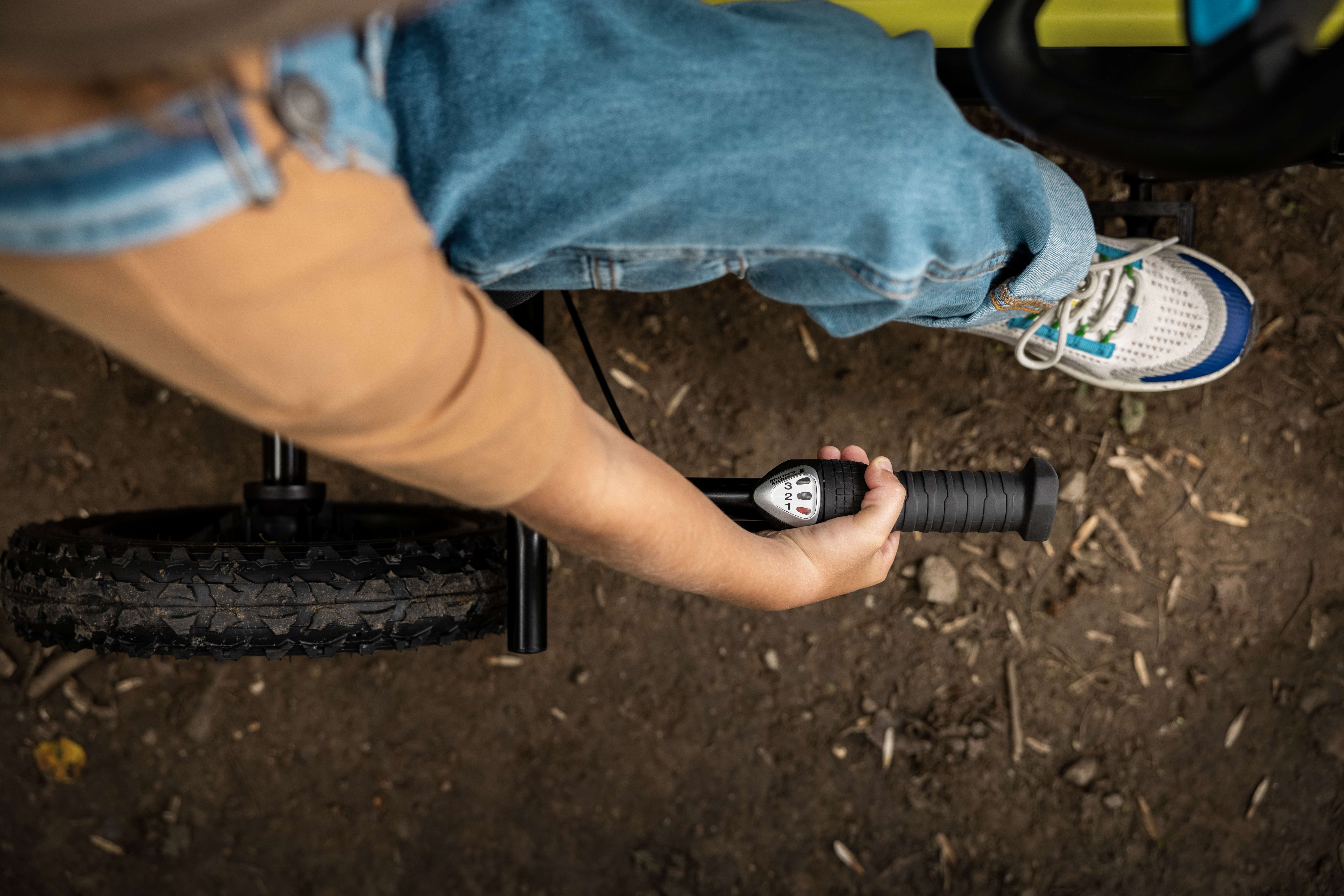 Jezděte pohodlně díky pneumatikám a kyvadlové nápravě. Jezděte rychle dopředu nebo dozadu se systémem BFR. Obsahuje parkovací brzdu pro bezpečné parkování. Nastavitelné sedlo zajišťuje, že Rally poroste s vaším dítětem po mnoho let!