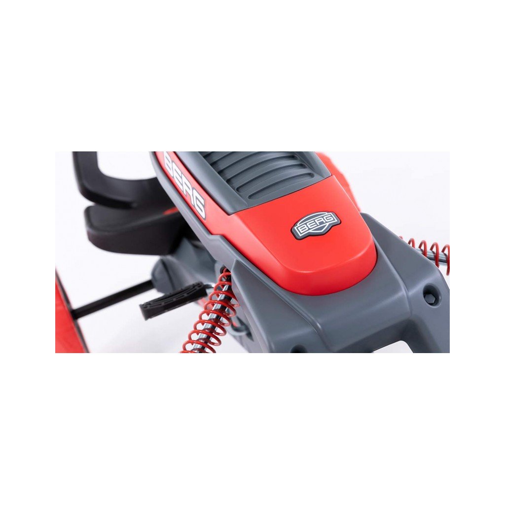 Výrazný sportovní volant, pneumatiky EVA, které se nikdy nepropíchnou, chladné sedlo a kyvadlová náprava dělají z jízdy na motokáře velkou zábavu. Díky nízkému sedlu je BERG Reppy první motokárou pro malé děti s opravdovým nízkým přístupem do motokáry. Když děti jedou po chodníku s Reppy, všechny oči jsou na nich. S BERG Soundboxem každý uslyší, když vaše dítě spustí motor, zrychlí nebo zabrzdí!