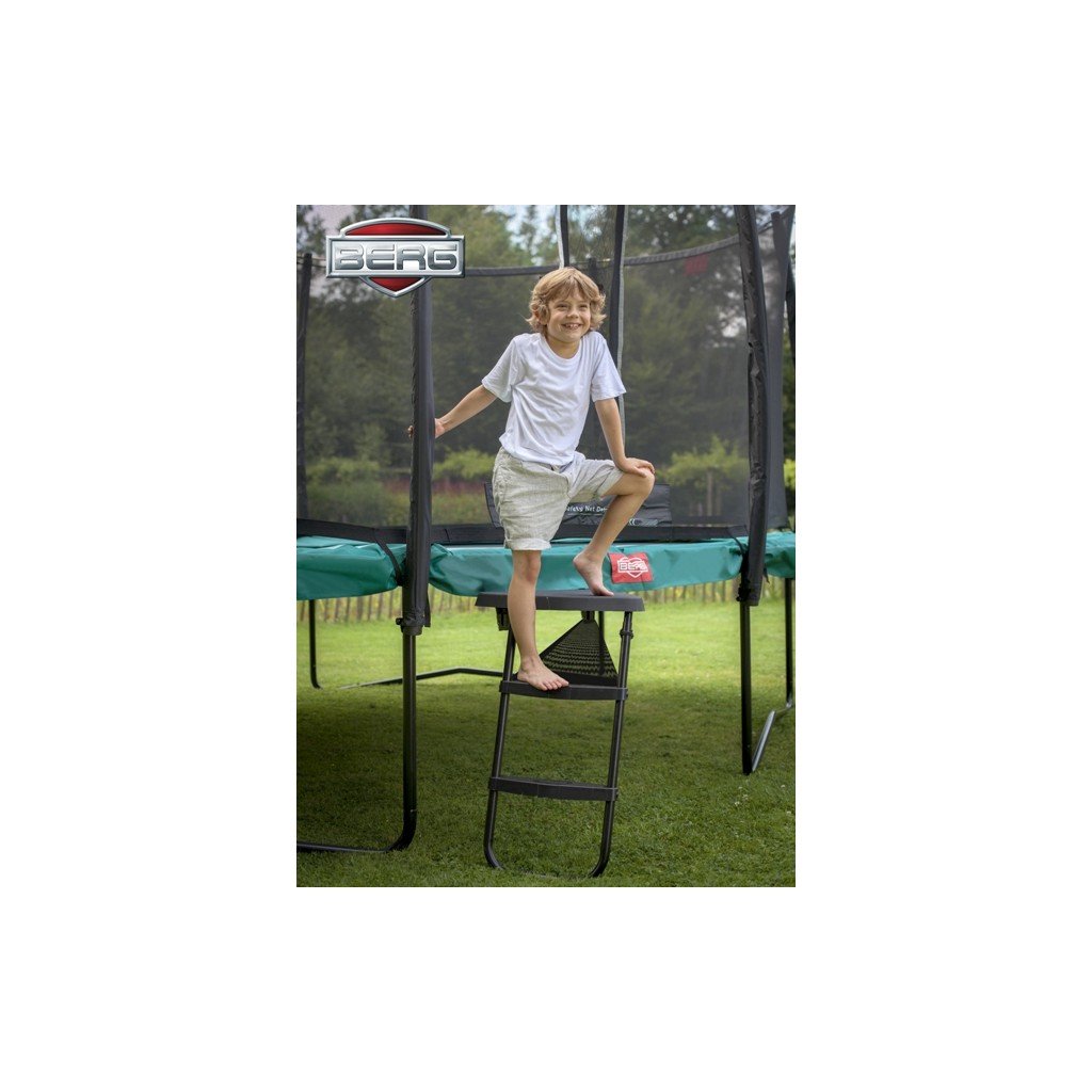 Vhodné pro trampolíny měřící 70 a 76 cm. Schůdky jsou výškově nastavitelné a pokryty protiskluzovým materiálem.