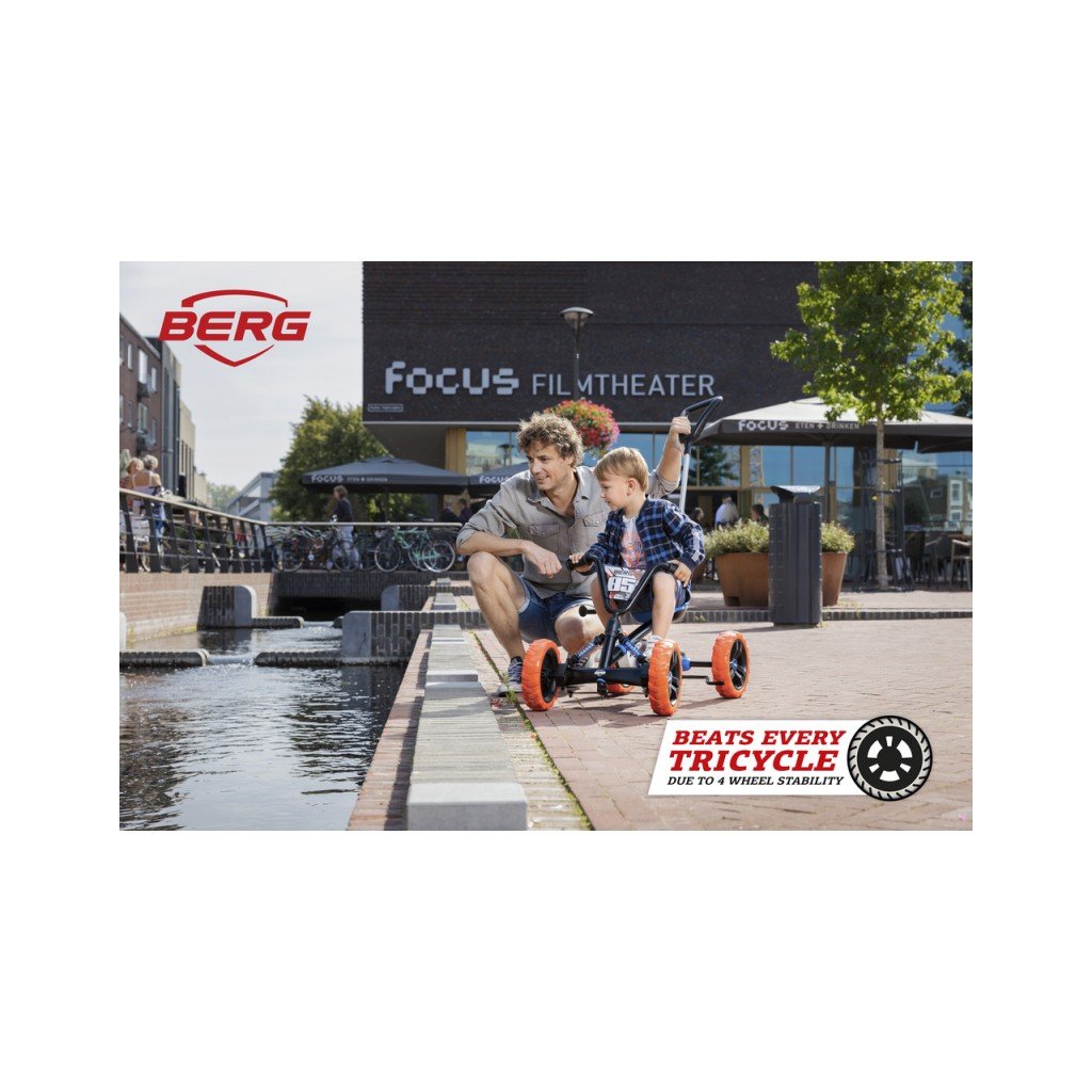Čtyři terénní kola a kyvná náprava udržují BERG Buzzy pevně na zemi. Na Buzzy vaše dítě zvládne jakýkoli terén.
