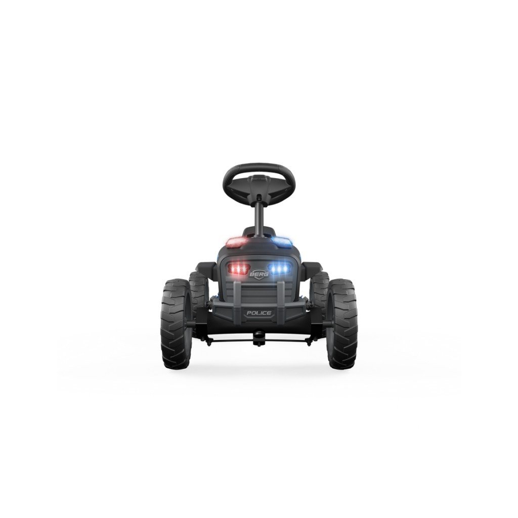 Čtyři kola činí motokáru BERG Buzzy mnohem stabilnější než tříkolku. Je opravdu bezpečný! A protože pedály nejsou spojeny s řídítky, nohy vašeho dítěte zůstávají pevně na pedálech i v nejostřejších zatáčkách. To činí šlapání mnohem snazší a Buzzy klouže po chodníku nebo asfaltu. A jede stejně rychle dozadu! Máte rádi hudbu? Buzzy Police je standardně vybaven integrovanou zvukovou skříňkou v řídítkách.