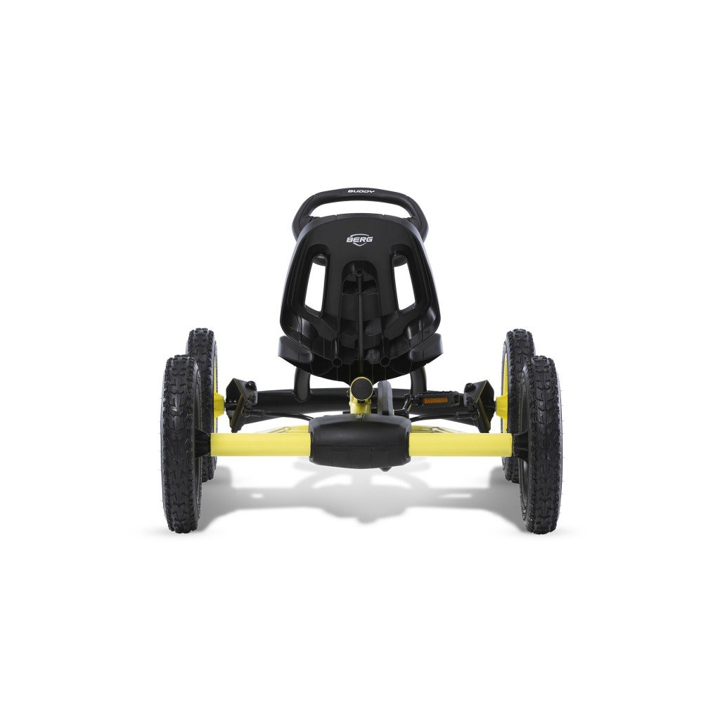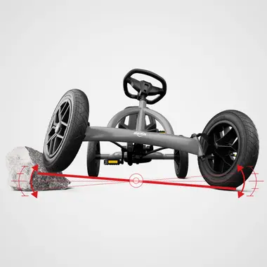 BERG Buddy má vynikající stabilitu díky svým čtyřem kolům a je také vybaven kyvadlovou nápravou. To umožňuje předním kolům mírně se pohybovat nahoru a dolů, aby tlumily jakékoli nerovnosti na silnici.