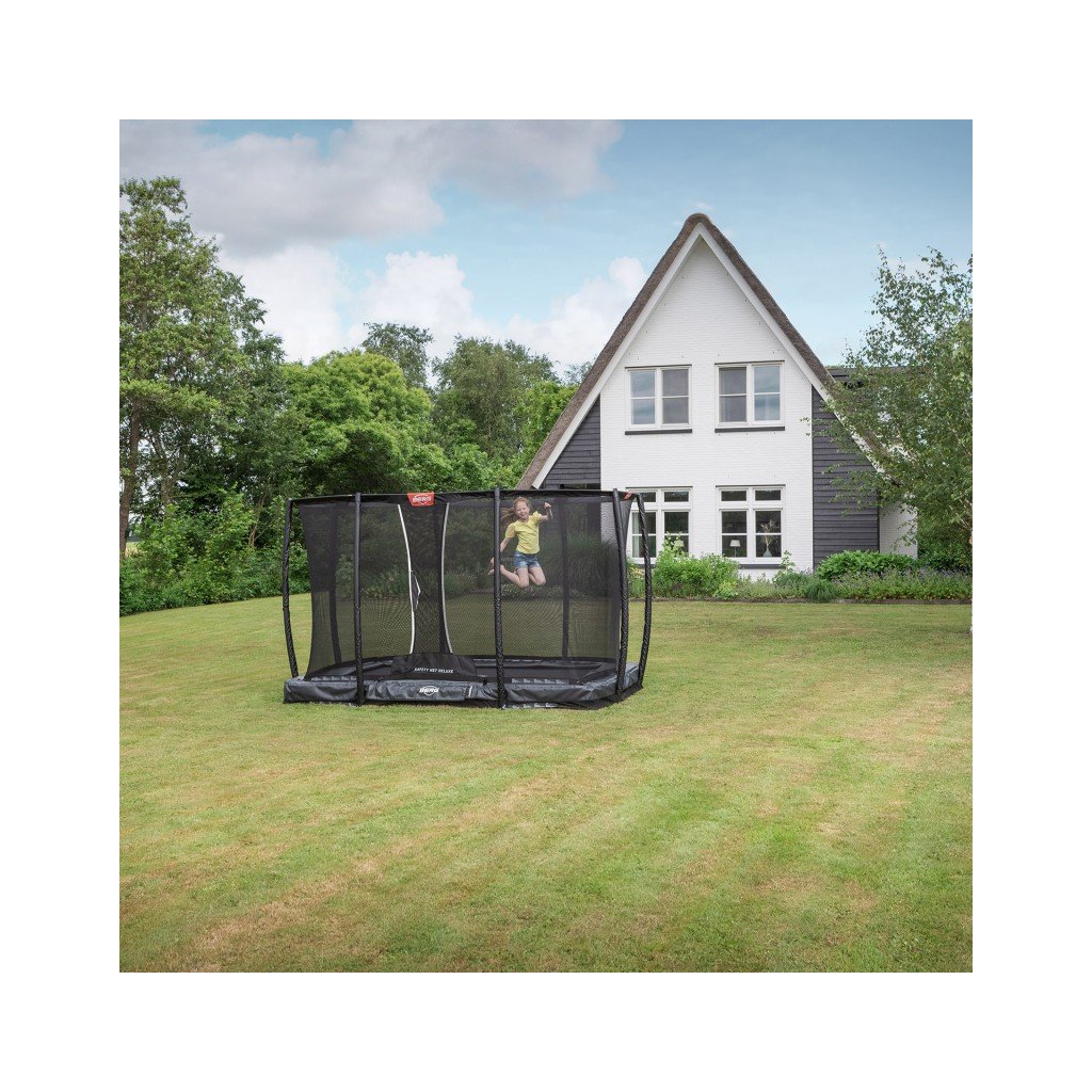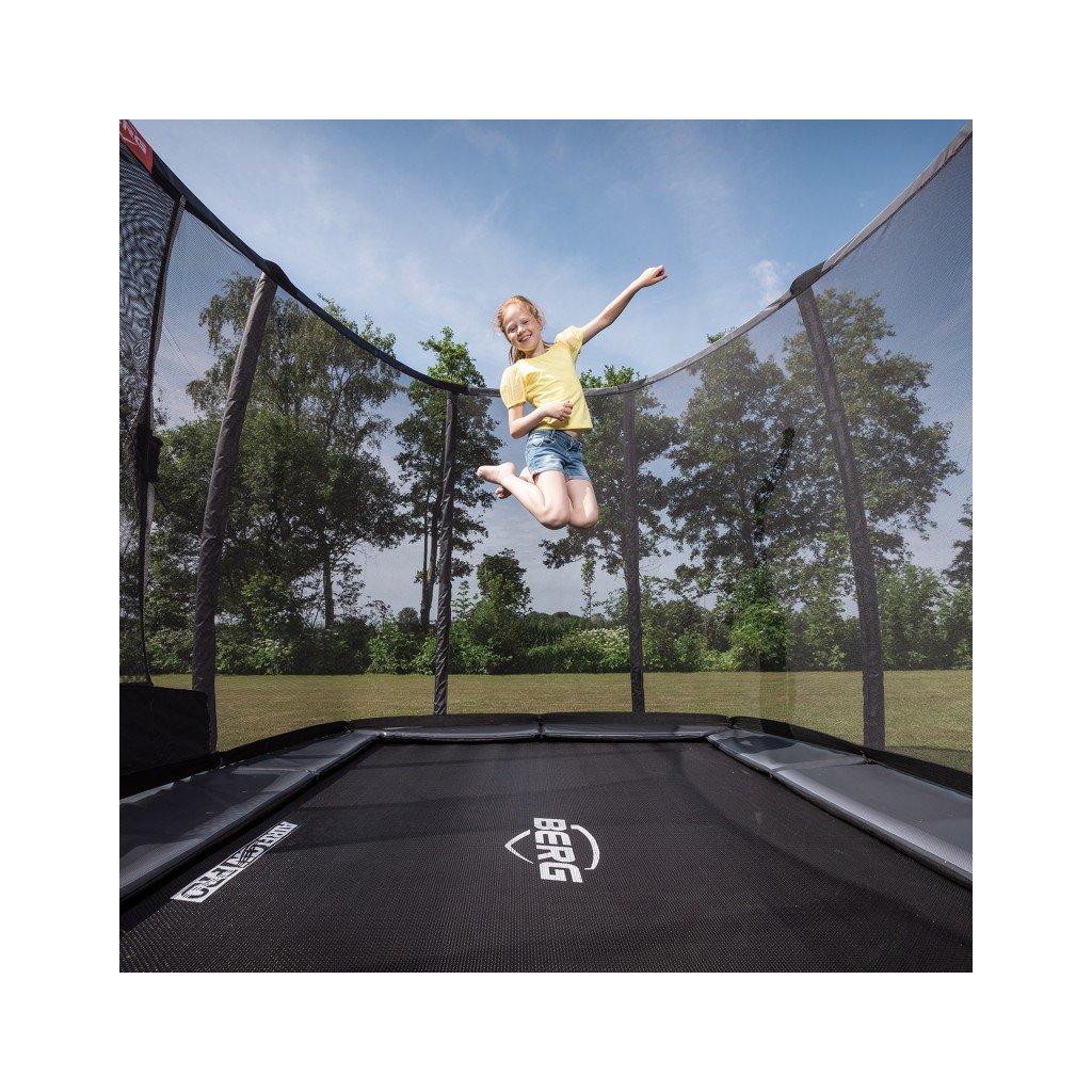Zabudovaná obdélníková trampolína Ultim Champion InGround 330 černá s ochrannou sítí Deluxe