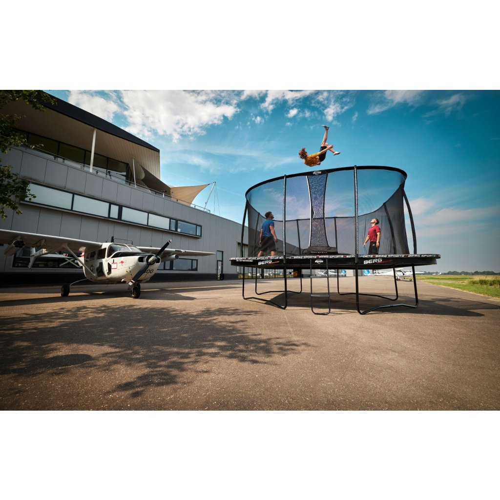 Extra silný ochranný okraj je vyroben z materiálu odolného proti UV záření, aby byla zajištěna maximální bezpečnost. I při nejvyšších skocích máš zaručené měkké přistání!