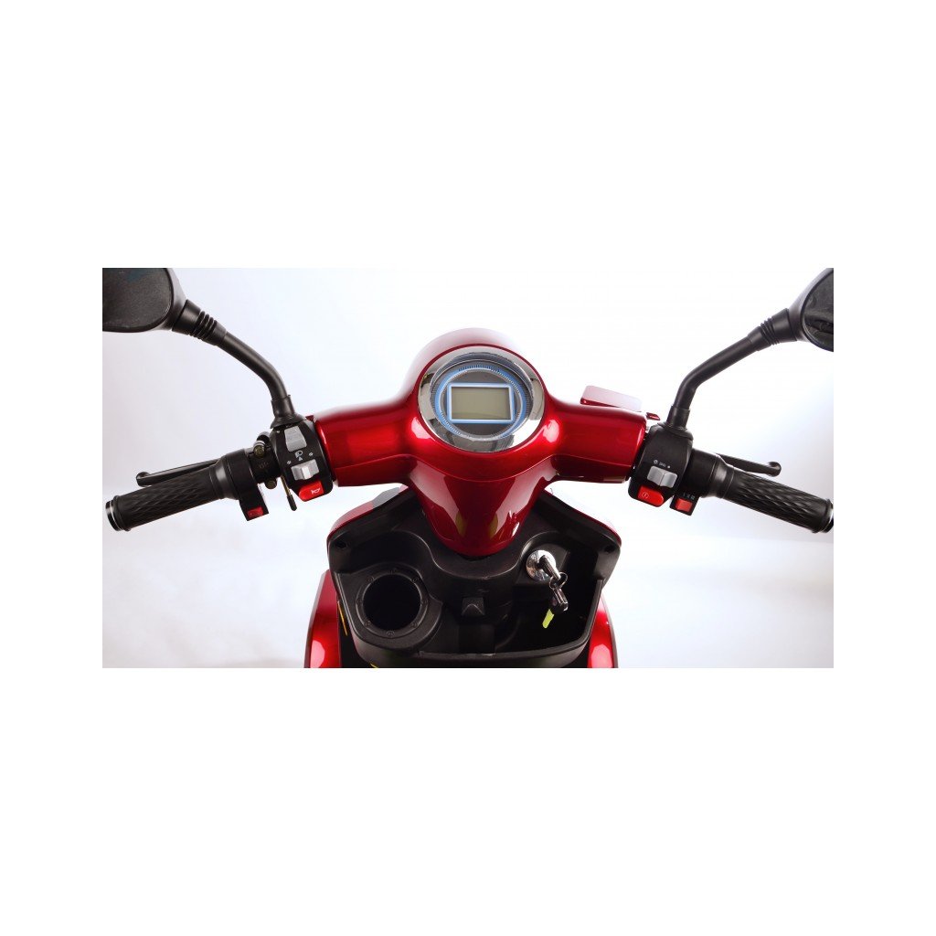 I přes robustní konstrukci projedete standardními dveřmi o šířce 80 cm. Design připomínající motocykl dodává skútru moderní a důstojný vzhled, který oceníte i v městském provozu.