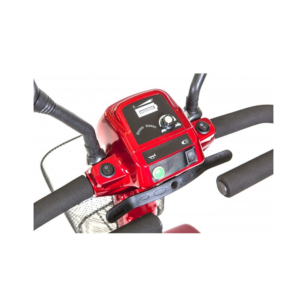 Elektrický vozík Selvo 4250 je vybaven plynulým ovládáním rychlosti pomocí páček přímo na řídítkách. Maximální rychlost lze nastavit potenciometrem před jízdou. Součástí výbavy je také praktický nákupní košík umístěný na řídicím panelu.